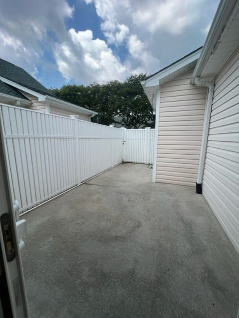 This beautiful 2 bedroom, 2 bath condo is located in the sought-after community of Willoughby Park, the open concept unit features an electric fireplace, wood floors throughout, a large laundry room, and lots of closets & storage. The sliding glass doors off the living area lead to a fenced patio area with a storage room. The Kitchen includes a breakfast bar and walk-in pantry and is set to the right allowing the chef to be part of the conversation but keeping prep conveniently hidden behind the raised bar, and is Complete with disposal, dishwasher, built-in microwave, stove, refrigerator and an abundance of counter and cabinet space, you'll enjoy cooking in this well-designated space. The Primary suite includes a large walk-in closet as well as a secondary closet & large connected bathroom.Willoughby Park is Convenient location in Monkey Junction that's just minutes to the hospital, midtown shopping and dining, 9 miles to Carolina Beach, and 15 minutes to Historic Downtown Wilmington where you will enjoy fine dining, Broadway shows, concerts, and a vibrant nightlife. You can't beat the location and the opportunity to start living your best life on the coast! Residents of Willoughby Park enjoy a community pool.